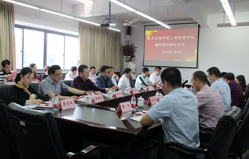 5月4日下午,商学院2018年工商管理学科校外兼职硕士生导师聘任仪式在南山综合楼C606会议室举行。副校长杜时贵、商学院党政领导班子成员及相关人员参加仪式。