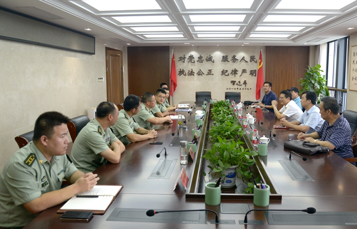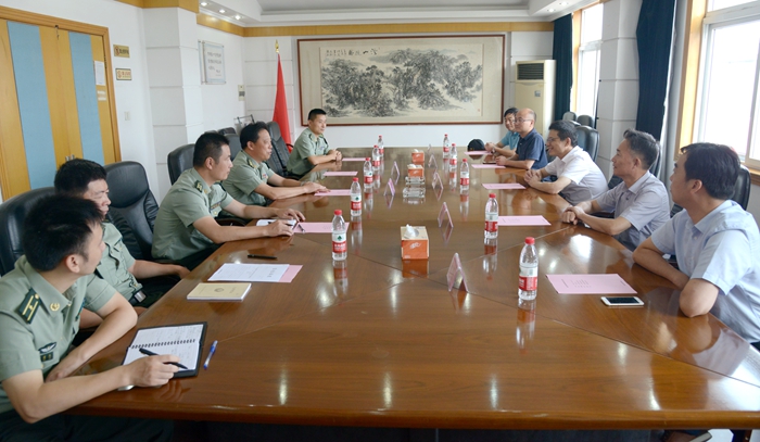 7月30日上午,王建力校长一行来到浙江陆军预备役师,向预备役师多年来对学校军训工作和大学生国防教育工作的支持表示衷心感谢;并在建军91周年来临之际,向预备役师全体官兵表示崇高的敬意,希望进一步加强校军合作,助力军队建设,强化立德树人,提高学校人才培养质量。预备役师参谋长洪永鹏大校、政治部主任马佩龙大校向王校长一行介绍了部队的建设情况,并对进一步做好学校的军训工作提出了具体建议和部署。