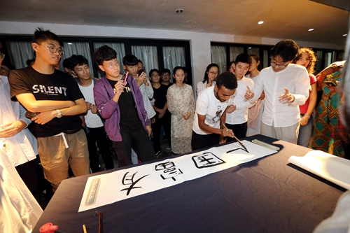 在“金秋雅集”笔会活动上,兰亭书法艺术学院院长沈伟开笔,学院国际研究生热情参加,将本次活动推向了高潮。