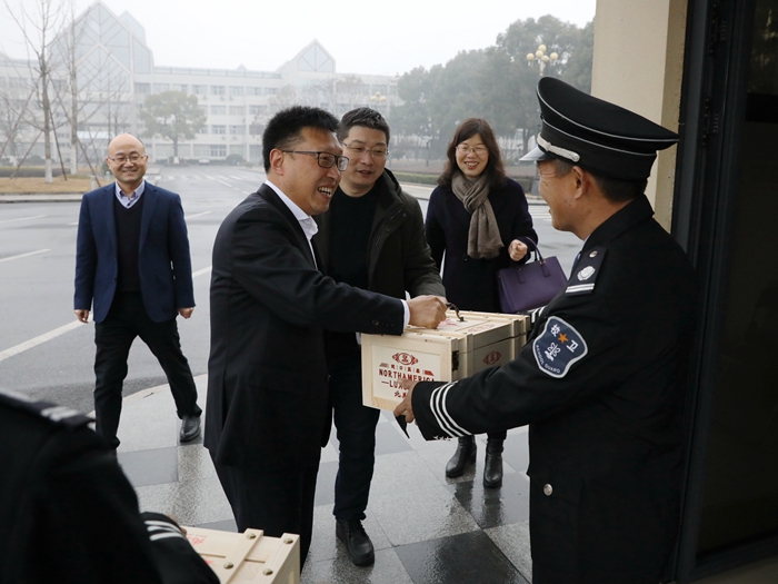 汪俊昌一行先后来到河西校区南大门传达室、学校总值班室、河西配电房、南山校区仲申书院、附属医院、兰亭书法学院、上虞分院、元培学院,亲切慰问了寒假期间依然坚守岗位的教职工和留校学生,致以诚挚的问候并代表学校党委和行政送上了新春祝福和慰问品。