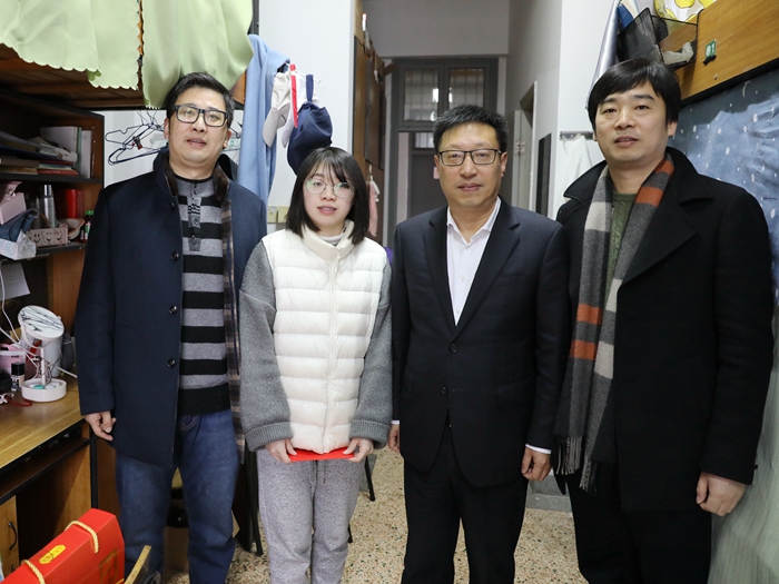 金犬欢腾辞旧岁,玉豚纳福迎新年,齐心合力谋发展,大展宏图抢争先。2月5日一早,己亥正月初一,校党委书记汪俊昌看望慰问坚守在岗位上的教职工和留校学生,并送去了新春的问候和祝福。副校长黄坚,党办校办、校工会及相关部门负责人陪同慰问。