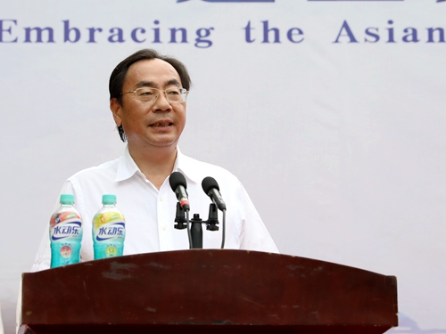 4月21日下午,“迎亚运•共发展”中外名校走进绍兴活动在我校风则江边举行。来自剑桥大学、牛津大学、伦敦大学以及西安交大、同济大学、集美大学等14所国内外著名高校的师生相聚风则江畔、畅叙友情。市委书记马卫光,市委常委、秘书长陆维,副市长顾涛,校长王建力,校党委副书记郝敬习等参加欢迎仪式。顾涛主持欢迎仪式。