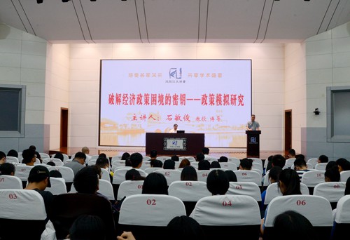 6月11日晚,浙江大学求是特聘教授、文科领军人才、公共管理学院博士生导师石敏俊教授做客风则江大讲堂,作题为《破解经济政策困境的密钥——政策模拟研究》的讲座。副校长张宏和400名师生代表现场聆听讲座。石敏俊教授分析了经济困境现状,提出“模拟政策”这一有效的应对策略,并重点阐述了对“模拟政策”的深入研究。