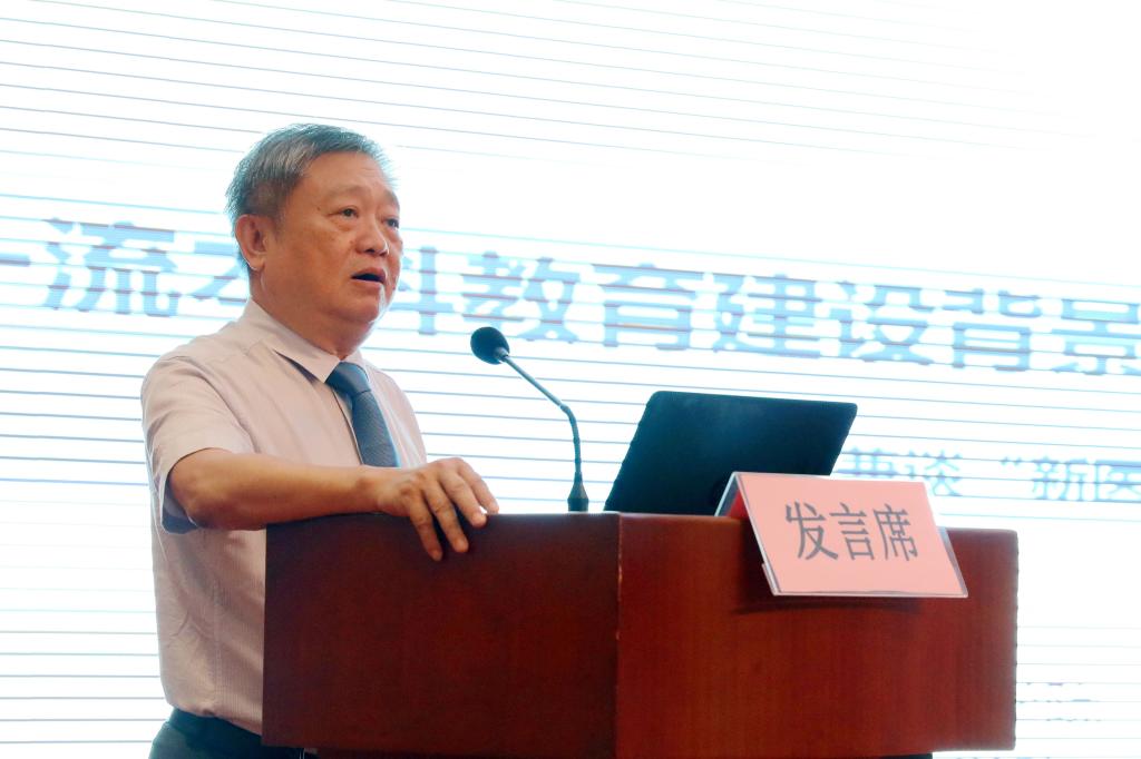 最后,教育部国家医学教学指导委员会委员、中山大学医学部副主任、国家级教学名师、我校“鉴湖学者”讲座教授王庭槐作题为《一流本科教育背景下本科人才培养——兼谈“新医科”》的学术报告。