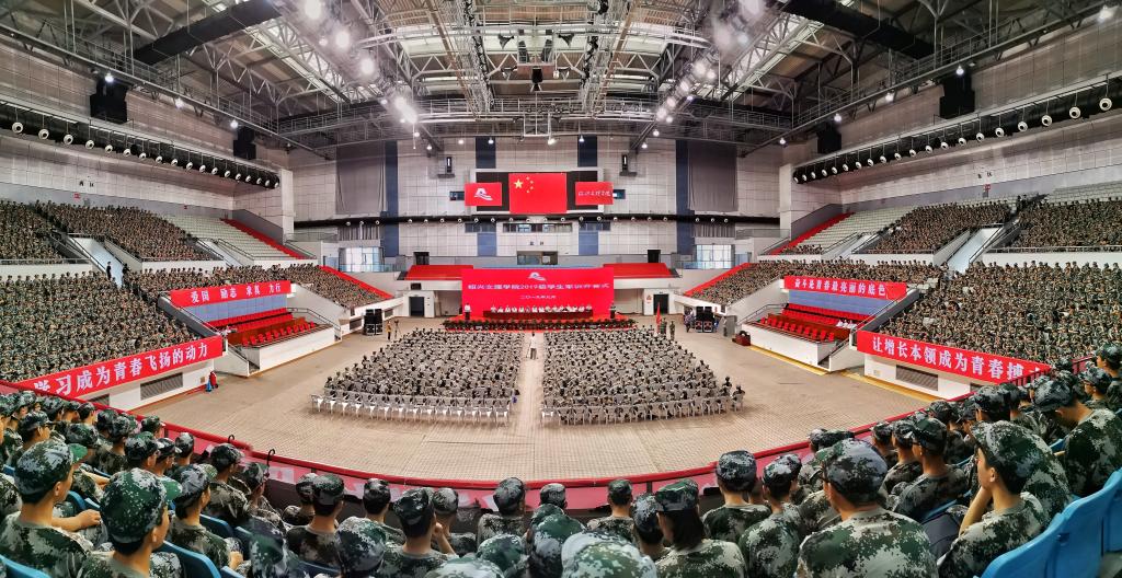 9月3日,中国人民抗日战争胜利纪念日、世界反法西斯战争胜利纪念日之际,学校2019级学生军训在河西体育馆隆重开营。2019级学生身着统一的迷彩服,以饱满的热情参加开营式,迎接为期10天的集中军事训练。