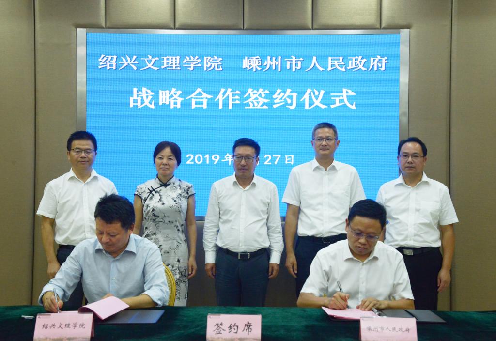 嵊州市高新园区管委会党工委书记裘庆军与我校科学技术处处长奚柏君代表双方签订共建嵊州市高新园区研究院协议。