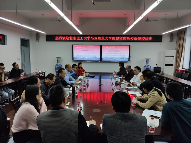 马克思主义学院负责人介绍了学院基本情况和思政课教学改革工作开展情况。与会人员结合专业教学和学术研究方面存在的困惑与难点,就如何开展案例教学与专题式教学、思政课教学名师工作室建设等议题与崔教授进行了互动交流。