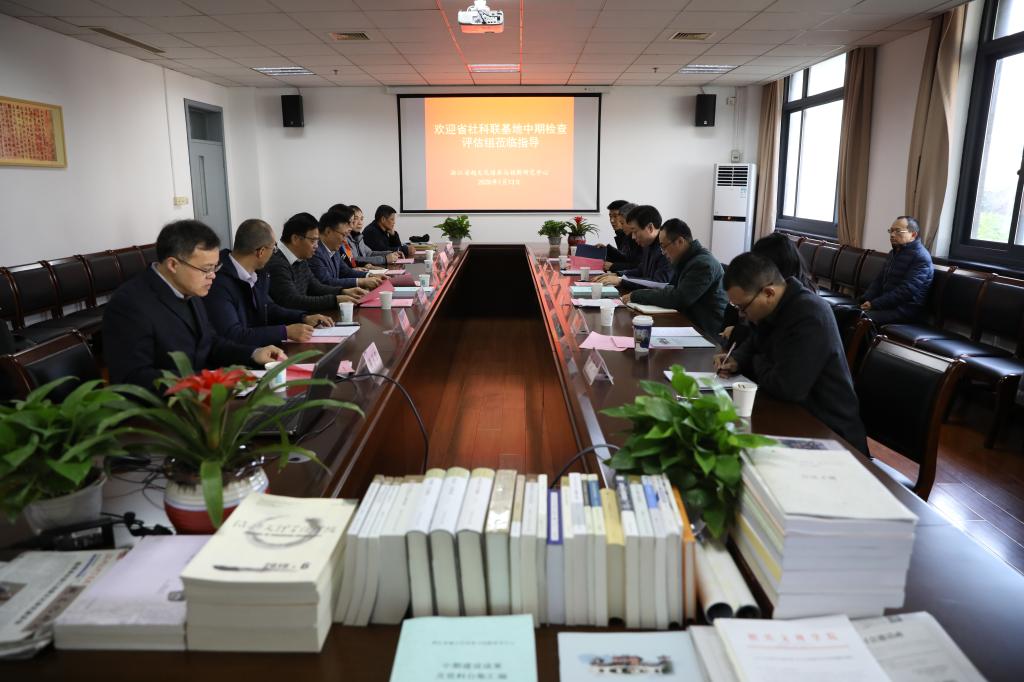 1月13日上午,浙江省越文化传承与创新研究中心基地中期检查评估会在我校南山校区13号楼102会议室召开。检查组组长、省社科联原巡视员何一峰,评估检查组副组长、省社科联科研管理处处长胡晓立等评估检查组成员,校党委书记汪俊昌、副校长寿永明,人文社科处、浙江省越文化传承与创新研究中心、学报、越文化研究院等相关职能部门负责人参加会议。汪俊昌致欢迎词并作汇报,寿永明主持评估会。