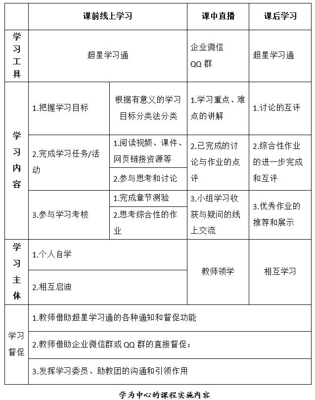 本课程章节内容都是提前几天开放,在学生课前自学线上学习内容,部分先进学生完成讨论和作业的基础上,课程按照教学课表安排的时间,借助课程的直播授课,与学生讨论专题学习的重点、难点,帮助学生深入理解前期线上自学内容,并提供理论联系实际的案例分享,是一种线上半翻转式的教学模式。