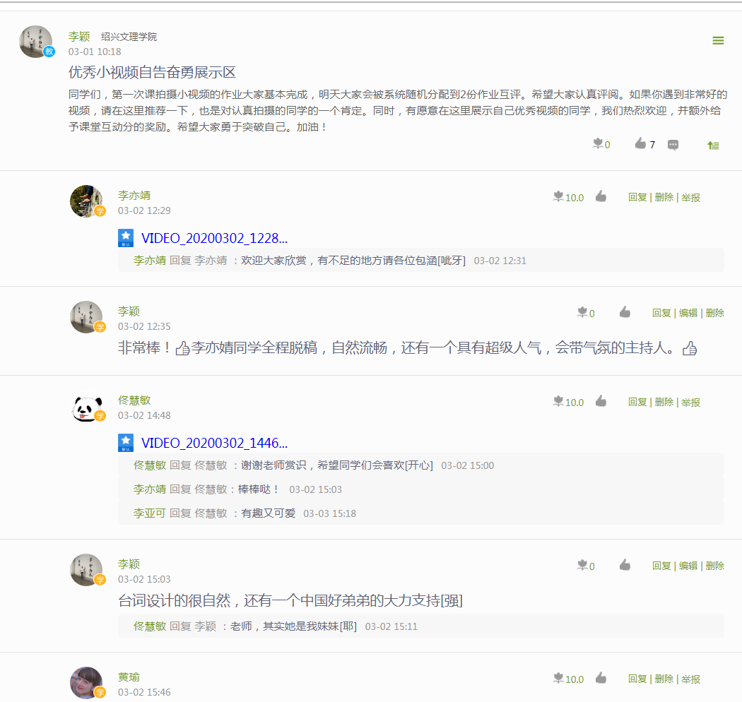 另外,一些精彩的作业在线上设置集中展示区,可以用榜样的力量带动学生的线上学习氛围。
