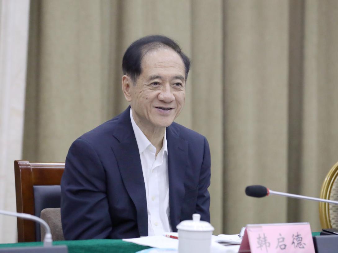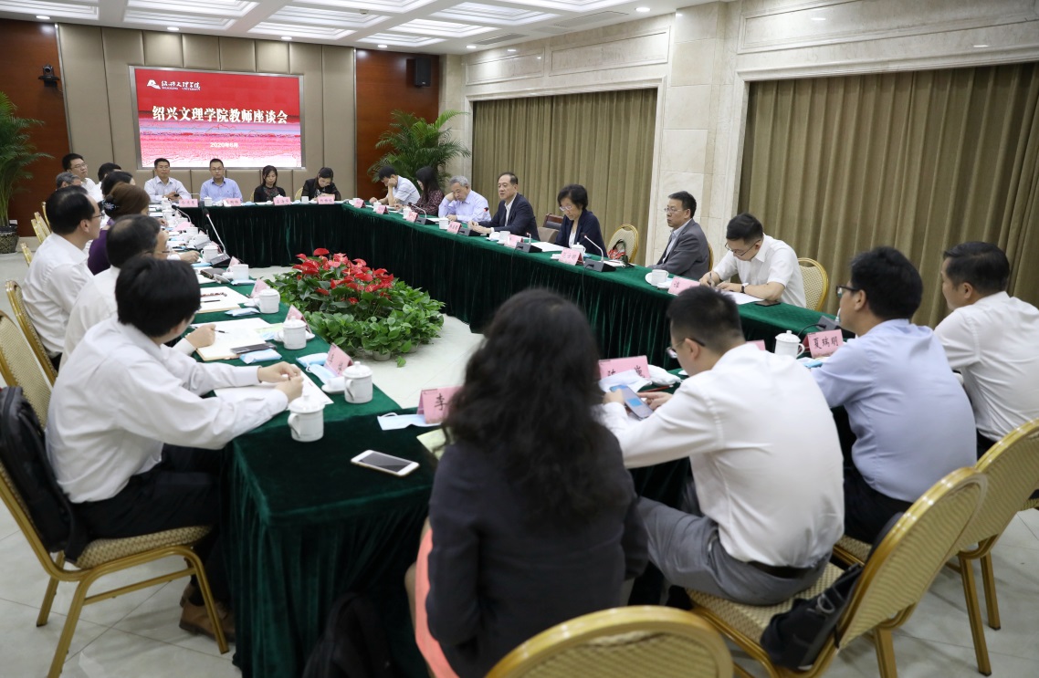 6月9日上午,学校在铁城科教馆一楼会议室召开教师座谈会。“卓越奖学基金”倡设者、十二届全国政协副主席、九三学社中央原主席、中国科协名誉主席、中国科学院院士韩启德,北京大学燕京学堂院长袁明教授,北京大学燕京学堂副院长范士明,第九届浙江省政协副主席冯培恩,九三学社浙江省委员会秘书长过维雅,绍兴市人民政府副市长顾涛出席座谈会。校党委书记汪俊昌,校长王建力,校党委副书记沈赤、郝敬习,副校长柳国庆、张宏,校党委委员宣绍龙、陈均土,以及部分教师代表出席座谈会。座谈会由汪俊昌主持。