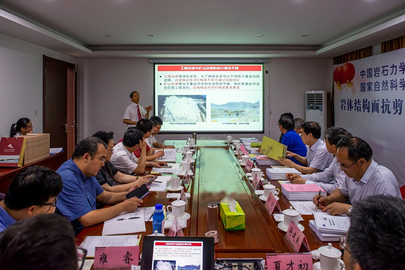 评价委员会、验收专家组首先到实验室进行了现场实地考察,听取了杜时贵对岩体结构面抗剪强度尺寸效应试验系统的介绍,并观看了设备的现场试验运行情况,随后听取了科技成果评价汇报和国家重大科研仪器研制项目验收汇报、审阅了相关技术资料,对项目技术和管理问题进行了质询。专家组肯定了项目组在大型科研仪器研制方面取得的丰硕成果:研制成功世界第一套岩体结构面抗剪强度尺寸效应试验系统与技术,首次在同一台试验机上实现了11个连续尺寸结构面试样(尺寸范围10cm×10cm至110cm×110cm)的直剪试验,攻克了岩体结构面抗剪强度尺寸效应试验技术难题,一致认为“该项目研究成果总体上达到国际领先水平”,鉴于该项目技术原创性高,且对重大科学问题解决作出了突破性贡献,验收专家一致同意该项目通过验收,推荐为优秀项目。