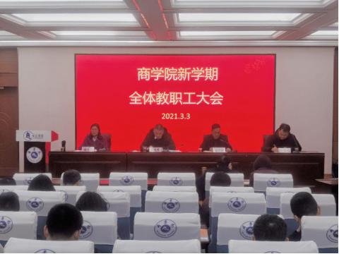 3月3日下午,商学院在综合楼A405报告厅召开新学期全体教职工大会。会议强调,今年学院重点做好五方面工作:一是抓好内部管理改革,要提高行政工作效率,发挥各系动能,形成系科合力,同时做好制度建设,规范工作流程,形成合理的评价模式;二是做强学科整体优势,要凝练学科研究方向,形成学科整体合力,启动高层次成果培育计划,形成标志性成果,对教师发展分层分类制定培养计划;三是做好人才引进工作,加大高端及海外人才引进力度,进一步优化学科人才队伍,做好“精准引才、以才引才”;四是增强资源保障能力,发挥各级研究中心、智库平台优势,加强对地方经济和政策的分析和研究,形成特色成果,拓展创收渠道,提高学院影响力;五是发挥党建引领作用,提升基层党组织的政治功能和组织力,引领学院重点工作贯彻落实,深化党支部标准化建设,发挥好党建、廉洁品牌作用。会议号召全院上下凝心聚力,团结奋进,争取取得更加丰硕的成果,为在“重要窗口”建设中展示“绍兴风景”贡献力量,向建党100周年献礼。