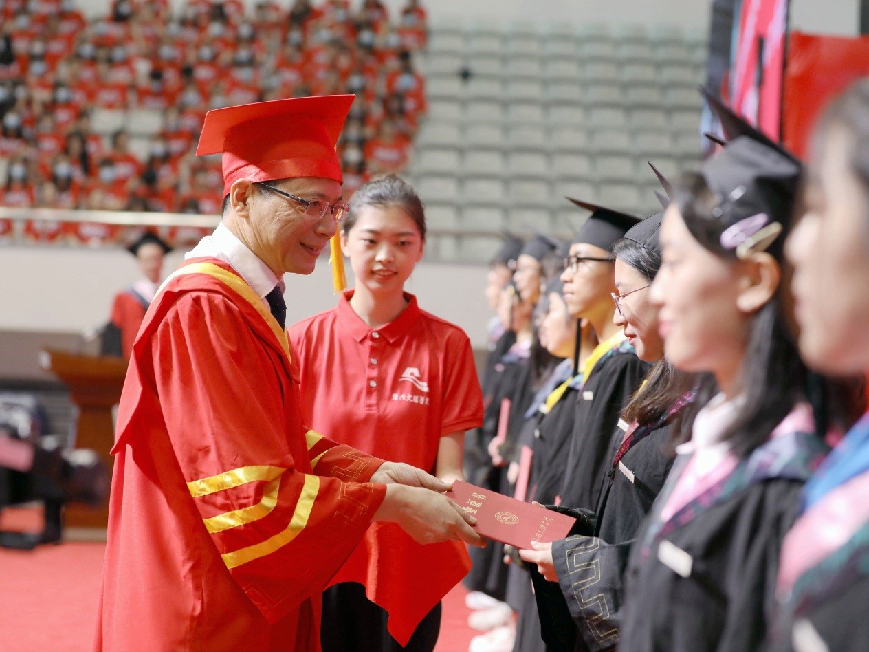 王建力为毕业生代表颁发毕业证书