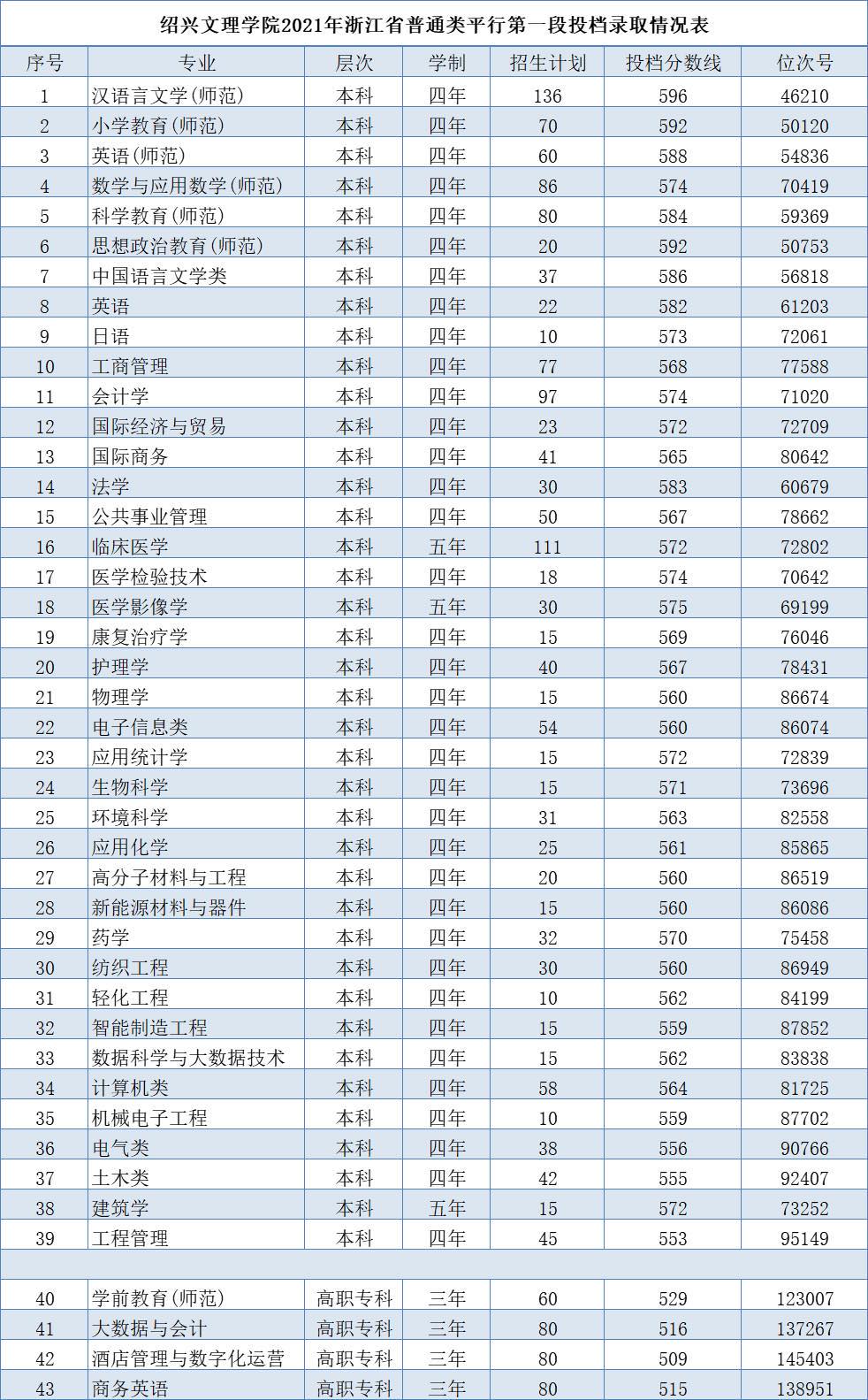 7月19日,我校2021年浙江省普通类平行第一段录取结束,共录取本科新生1554人、高职专科新生298人。