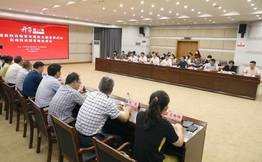 9月17日下午,“开学第一课”“共同富裕”在绍高校百场青年理论主题宣讲活动启动仪式暨首场宣讲会在我校图书馆一楼报告厅举行。活动由绍兴市委宣传部、绍兴市教育局主办,我校承办。校党委副书记张宏,绍兴市委宣传部副部长茹福军,绍兴市教育局党委副书记、副局长马成永,校党委委员、宣传部部长梁瑜,在绍其他高校宣传思想工作分管领导、思政教师代表,我校职能部处负责人、思政教师代表,绍兴市“共同富裕”青年理论宣讲团成员等参加仪式。启动仪式由梁瑜主持。