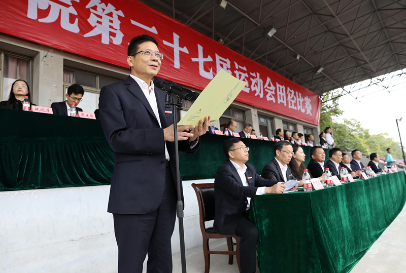 10月28日上午,我校第二十七届田径运动会在南山田径场开幕。校党委书记汪俊昌,校长王建力,校党委副书记沈赤,副校长寿永明、柳国庆,校纪委书记柯羽,副校长陈均土,校党委委员、组织部部长宣绍龙,校党委委员、宣传部部长梁瑜以及田径运动会组委会成员在主席台就坐。开幕式由柳国庆主持。