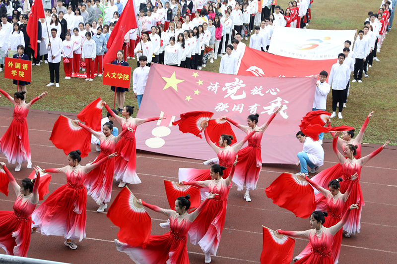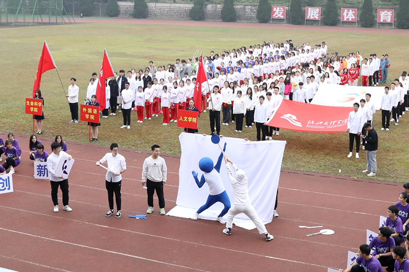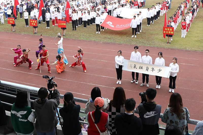 国旗、校旗、会旗,裁判员、教练员、运动员代表,各学院代表队,依次入场。各学院代表队用独具特色的节目表演和创意编排展现了本学院的专业特色和精神风采,独具匠心的方阵表演令人耳目一新。