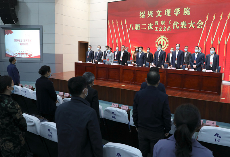 预备会议和主席团第一次会议后,4月13日下午,学校八届二次教职工暨工会会员代表大会在雄壮的国歌声中开幕。