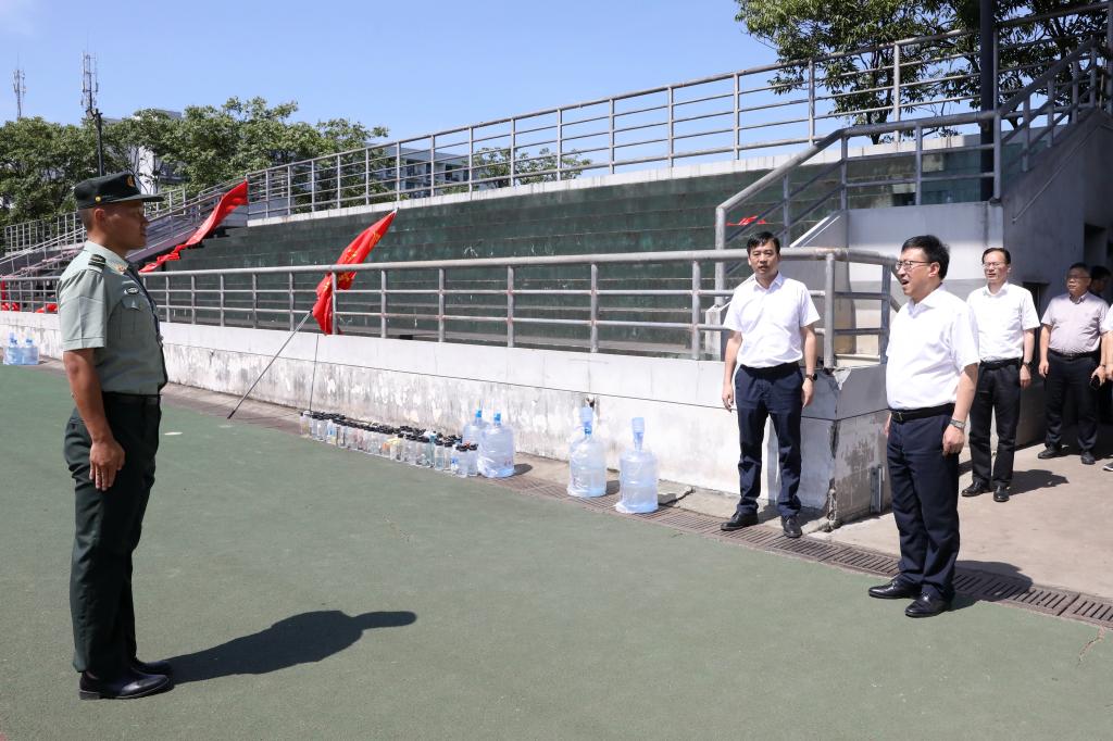 6月27日上午,校党委书记汪俊昌,党委副书记张宏,副校长柳国庆、黄坚、陈均土等一行来到河西校区、南山校区、元培学院等,慰问2022年军训承训教官和参训师生。党办、校办、学工部、保卫处、元培学院等相关负责人陪同。