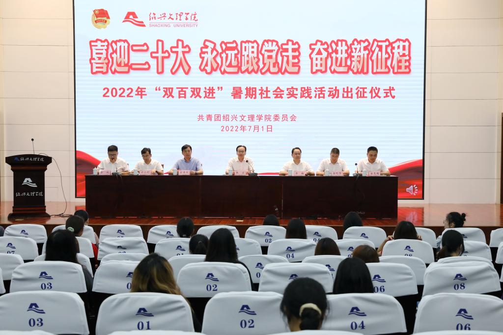 7月1日下午,我校2022年“双百双进”暑期社会实践活动出征仪式在铁城报告厅举行。校党委副书记张宏,校党委委员、党委宣传部部长梁瑜,党委学工部、教务处、保卫处和校团委相关负责人出席仪式,各学院团委书记及实践团队代表共200余名师生参加仪式。