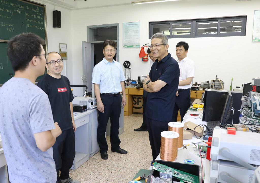 在各二级学院实验室和科研工作室,王建力向在暑期坚守岗位潜心科研工作的教师们致以亲切的问候,对老师们的敬业精神给予了高度赞扬。他详细询问了各项工作的保障情况和近期取得的研究成果,叮嘱大家注意防暑降温,保重身体,并时刻紧绷实验室安全这根弦,确保研究工作的安全开展。王建力代表学校对大家的辛勤付出表示由衷的感谢。