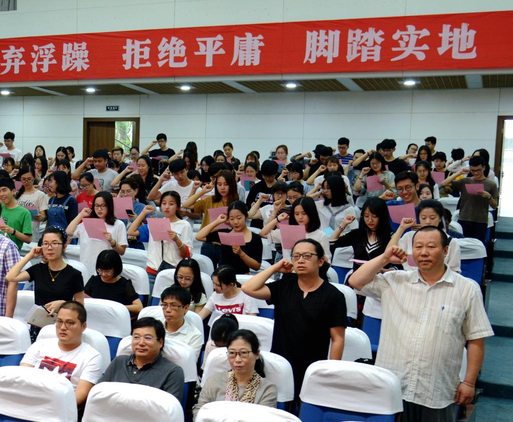 外事处处长冯燕对2017年百人计划基本情况作了介绍。医学院陈小萍作为带队教师代表发言,表示将认真负责完成带队任务,在学习和生活中给予学生及时的指导和帮助;同时也积极参加学术交流,推动学校和国外院校建立学术联系。人文学院方楠代表交流学生发言,感谢学校给予机会,让同学们走出国门,去看更广阔的世界。她表示将怀着一颗感恩的心,做好文化交流与传播。随后,参与计划的师生共同宣誓。