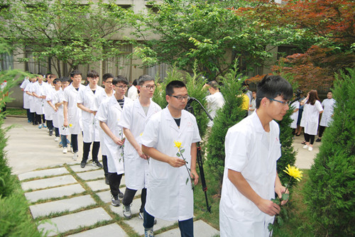 我校临床医学专业133班胡露琦在发言中说,作为一名初登医学殿堂的学生,正是因为“无语良师”的付出和奉献,才可以更全面、更直观地学好医学知识,更深刻地感悟救死扶伤和仁心仁术的内涵。他表示,将怀着无比崇敬和感恩之心,刻苦学习,不忘初心,竭尽全力除人类之病痛,助健康之完美,维护医术的圣洁和荣誉;救死扶伤,不辞艰辛,为祖国医药卫生事业的发展和人类身心健康奋斗终身。