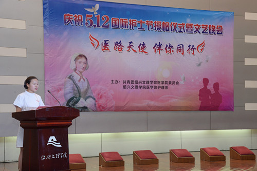 5月10日,我校庆祝5•12国际护士节授帽仪式暨“医路天使 与你同行”主题文艺晚会在铁城科教馆报告厅隆重举行。校党委委员、医学院党委书记柳国庆,校学工部、校团委、医学院相关负责人,以及2014级全体护生出席授帽仪式。