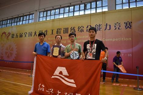 第五届全国大学生工程训练综合能力竞赛于5月12日至14日在合肥工业大学翡翠湖校区举行。经过主控电路板现场焊接、行进轮现场激光切割加工、小车拆卸、机电整体联调、两轮现场绕障运行、设计方案评审等环节的竞赛,我校参赛队脱颖而出获得一等奖,总成绩在104支参赛队中排名第23位。