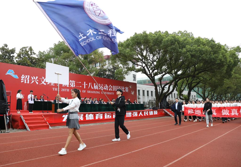 国旗、校旗、运动会会旗以及各二级学院运动员代表组成的方阵依次入场,各方阵同学身着统一服装、迈着坚定昂扬的步伐,彰显出青春与活力。升国旗仪式中,在场师生庄严肃立,面向国旗行注目礼。