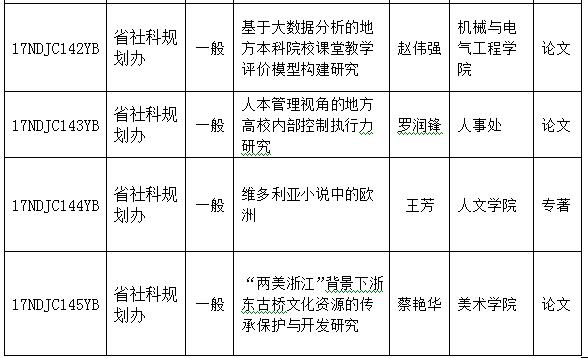 日前,浙江省2017年度哲学社会科学规划立项结果正式公布,我校共获批11项,其中由洪波老师主持申报的《马克思“个体”与“共同体”关系视界下的中国社会治理研究》获重点项目,丁志刚等10位老师获一般项目。详见附表。