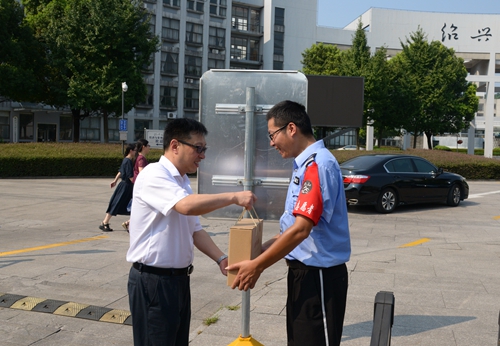 汪俊昌一行先后走访了河西餐厅、河西医务室、基建处、河西门卫、南山门卫、建功书院、招生办公室,亲切慰问暑假期间依然坚守岗位的后勤、基建、保卫和医疗工作者等。每到一处,都与在岗教职员工一一握手并亲切交流,了解教职工们的工作情况,向他们表示亲切的慰问,并送上防暑用品。