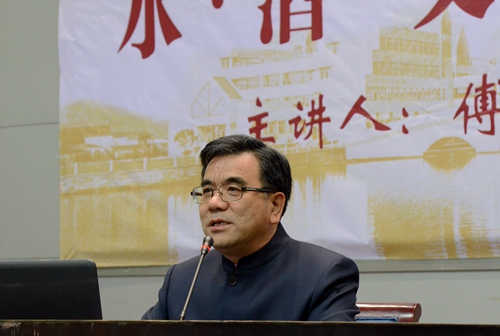 12月16日晚,中国绍兴黄酒集团董事长,浙江古越龙山绍兴酒股份有限公司董事长、总经理傅建伟教授级高级工程师做客风则江大讲堂,畅谈水、酒、文化,讲述古越龙山发展历史。校党委副书记沈赤主持讲座。