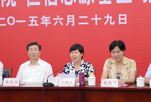 副市长、市红十字会会长丁晓燕致辞对茹振刚先生心怀感恩、回报社会、关爱优秀贫困学子的爱心善举表示感谢。她对一直走在全省乃至全国的前列的绍兴红十字工作和我校红十字的社会救护工作给予了高度评价。与此同时,她从加强联系、密切配合、坚守公信,传承人道、凝聚爱心、扩大参与,懂得感恩、心有他人、回报社会提出三点要求。她希望“恒信志源基金”所有的受助学生,都要自强不息,刻苦学习,懂得知恩图报、奉献爱心,切实肩负起责任,做一个对国家、对社会、对家庭有用的人。
