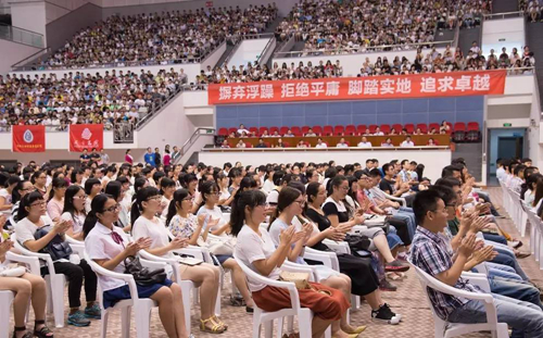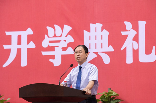 随后,叶校长简要介绍了学校的发展历史和创新过程中的重要举措。他指出,多年来,学校在创新中一路前行,从推出新版人才培养方案,到创新学生宿舍管理模式,学校作为年轻的地方院校,奋发图强,不断创新。“创新是每个大学生的应有思维方式和生活习惯,创新也将为我们每个人的事业发展打开一片又一片新天地,在未来的竞争中,创新使你们与那些已经跑在前面的人,重新站在同一起跑线上”,叶校长语重心长地说道,“今天的开学典礼是你们开启未来的重要时刻,在这重要时刻,我与在座的同志们一起为大家祝福,祝你们在今后的学习中不断提升创新能力,不断取得创新成果!”