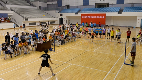 6月27日,我校首届校友羽毛球比赛在学校体育馆隆重举行,来自绍兴六个县市区的校友会及校羽毛球协会近百名校友参加比赛。
