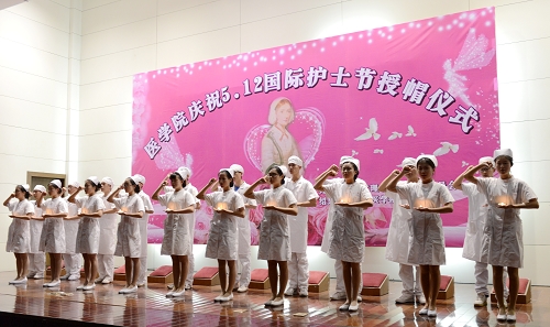 庆祝5•12国际护士节授帽仪式在铁城科教馆报告厅举办,市护理学会秘书长、副理事长张园芳,市妇女儿童医院护理部主任孙秀娟,市第六人民医院护理部主任马建英,市第七人民医院护理部主任任雪英,校党委委员、医学院党委书记柳国庆,校党委委员、宣传部部长胡保卫,学工部、校团委、附属第一医院、附属第二医院、附属医院相关负责人,医学院护理系教师、全体学生300余人出席授帽仪式。