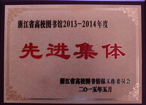 近日获悉,我校图书馆被浙江省高校图书情报工作委员会授予“浙江省高校图书馆2013-2014年度先进集体”的光荣称号,同时,馆长舒炎祥和参考咨询部主任叶升阳分别获得了省高校图书馆“优秀馆长”和“先进个人”的殊荣。