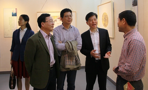 开幕式后,与会领导和嘉宾参观了“乙未书画名家精品展”。此次书画精品展由浙江省美术家协会、浙江省中国人物画研究会、绍兴市文联、我校美术学院共同主办,由绍兴市文联文艺创作展览中心、绍兴市美术家协会承办,汇聚了浙派人物画旗手吴山明先生和七名青年才俊的近百幅佳作。