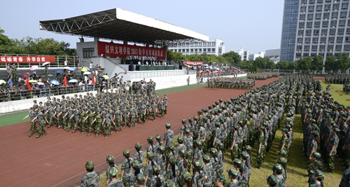 9月6日上午,2013级学生军训闭营式在南山校区田径场隆重举行。5082名参训学生在经过为期11天的集中军事训练后,以崭新的面貌接受了检阅。