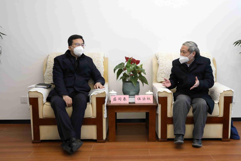 1月4日上午,绍兴市委书记盛阅春专程来校慰问土木工程学院教授、俄罗斯自然科学院外籍院士、省特级专家伍法权。市委秘书长孙君,市委组织部副部长、“两新”工委书记、人才办常务副主任王国飙,绍兴市科技局党组书记、局长徐丽东等陪同慰问。校党委书记汪俊昌,党委副书记沈赤,党委委员、组织部部长、人才办主任宣绍龙,党办、校办、人才办、土木工程学院相关负责人等参加慰问活动。