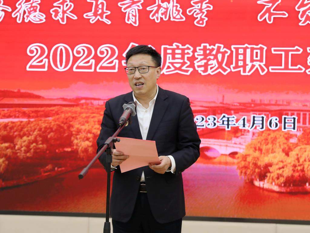 汪俊昌代表学校党委、行政和全校师生对荣休教职工为学校事业发展做出的贡献表示崇高敬意和诚挚谢意,他回顾了2022年学校建设发展取得的成果和未来学校发展规划。他表示,荣休仪式是学校对各位教职工职业生涯的肯定,也是学校传承立德树人使命的重要抓手和载体。他希望荣休老师继续关心和支持学校的建设发展,对学校工作多提宝贵意见,学校也会继续弘扬尊老敬老的传统,为荣休老师做好服务,让荣休老师在政治上有荣誉感,在组织上有归属感,在生活上有幸福感。