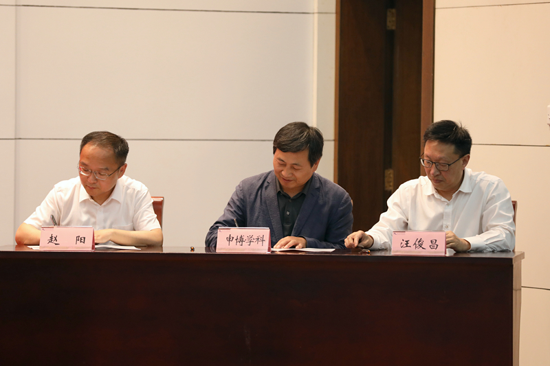 汪俊昌、赵阳与中国语言文学、化学、土木工程三个申博学科负责人签订责任书。