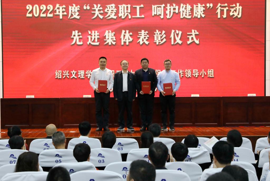 汪俊昌、黄坚为2022年度“关爱职工 呵护健康”行动先进集体颁奖。校园建设处、党委组织部、纪检监察室、国际交流合作处、资产与后勤管理处等5个部门,外国语学院、化学化工学院、生命与环境科学学院等3个学院获得2022年度“关爱职工 呵护健康”行动先进集体。机关党委书记、组织部副部长于响生宣读表彰决定。