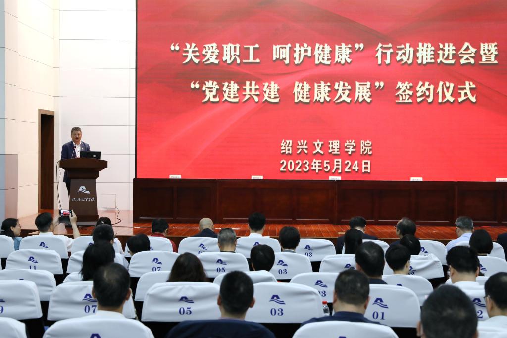 5月24日下午,我校在铁城科教馆报告厅举行“关爱职工 呵护健康”行动推进会暨“党建共建 健康发展”签约仪式,深入贯彻落实中共中央、国务院《“健康中国2030”规划纲要》精神,推动落实《久久精品一区二区|久久久一区二区三区|欧美日韩视频|欧美福利视频|高清欧美性猛交xxxx黑人猛交|久久久www成人免费精品|在线观看成人网站关于构建教职工“大健康”保障工作机制的实施意见》,进一步增强教职工身体素质和改善健康状况。校党委书记汪俊昌,党委副书记、工会主席沈赤,副校长黄坚,相关职能部门主要负责人,校教职工“大健康”保障工作领导小组成员,各二级学院党委书记,机关各党支部书记、分工会主席,附属医院主要负责人及各党支部书记参加。仪式由沈赤主持。