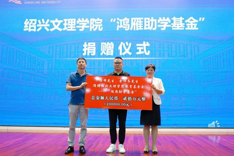 沈赤对陈峰、金伟良两位企业家的慷慨捐赠表示由衷感谢。他表示,学校的建设发展一直得到社会各界和广大校友的大力支持,本次捐赠不仅体现了企业家的担当奉献精神和社会责任感,更是一堂生动的新生始业教育课。对于基金的使用和管理,他提了三点希望:一是学院和教育基金会要立足实际、规范管理,最大限度地发挥好基金的作用,把好事办好,让捐赠者放心。二是希望同学们对标先进、刻苦学习、奋发笃行,要常怀感恩之心,努力以自己的实际行动和优异成绩回报学院的期望和社会的关怀。三是欢迎两位企业家常来学校,分享创业理念和成功历程,传递榜样力量,引领更多的大学生实现创就业。