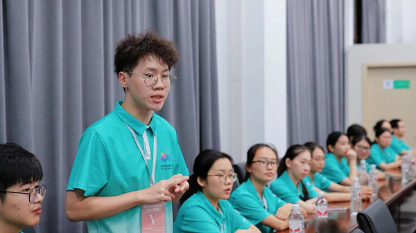在志愿者换岗休整空间,张宏一行参加了志愿者综合演练复盘小结会。市机关事务服务中心党组成员、副主任、运动员接待饭店副指挥长王可介绍实战演练整体情况,对我校志愿者青春活泼的精神状态和积极勤奋的工作状态给予了高度肯定。已参加完一轮演练的志愿者和带队老师难掩激动心情,纷纷发言,汇报工作内容,交流演练中遇到的突发状况,分享心得感悟。团市委、校学工部、校团委等相关部门交流回顾亚运会绍兴运动员接待饭店志愿者工作进程。