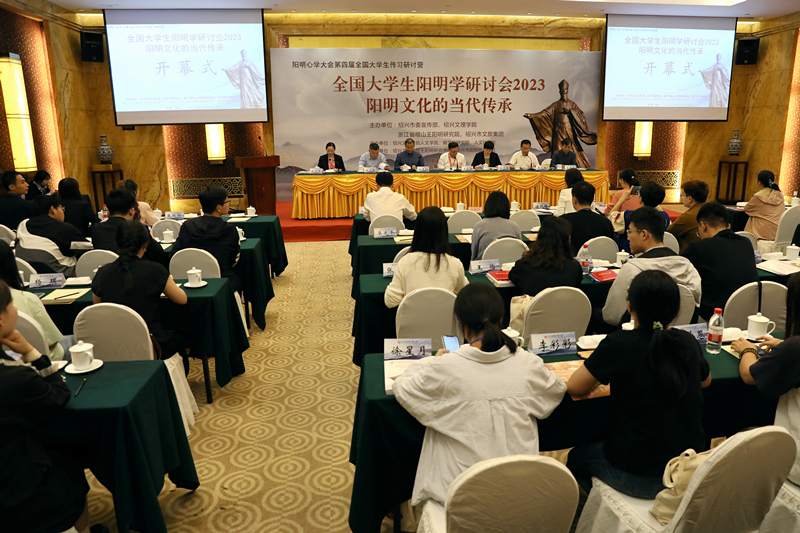10月31日下午,阳明心学大会第四届全国大学生传习研讨营“全国大学生阳明学研讨会2023:阳明文化的当代传承”在绍兴国际大酒店开幕。校党委书记汪俊昌,绍兴市委宣传部副部长俞正英,贵阳学院副校长汪建初,校人文学院、办公室、人文社科处、宣传部等相关二级学院、职能部处负责人,来自全国的专家学者、学生代表、媒体记者等参加开幕式。