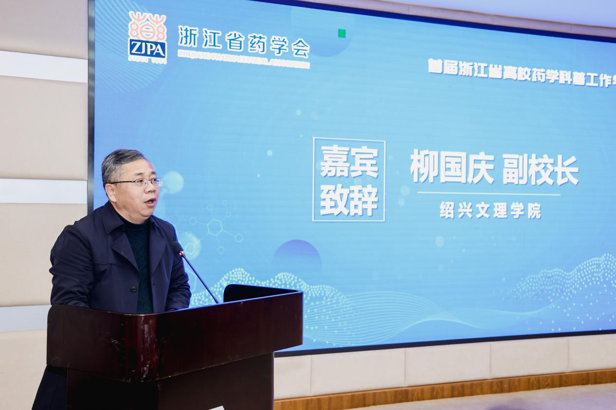 柳国庆代表学校对研讨会的召开表示热烈的祝贺,对远道而来的各位领导、科普指导教师、科普宣讲员表示诚挚的欢迎。柳国庆表示,近年来,学校紧紧围绕浙江省三大科创高地中的“生命健康、新材料”两大高地和绍兴市“生命健康、高端纺织、高分子新材料、芯片制造”等万亩千亿产业,发挥学科专业优势,不断深化校企合作、产教融合发展。本次大会以“科普“药”未来”为主题,聚焦于药学科普领域,汇聚健康科学和化学、药学科学领域各界资源力量,契合新时代人民健康的发展需求,必将推动医药领域的科技创新发展。